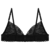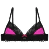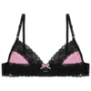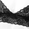 Verstelbare spaghetti schouderbanden, driehoekige bekers met gebloemde kanten rand, treksluiting.